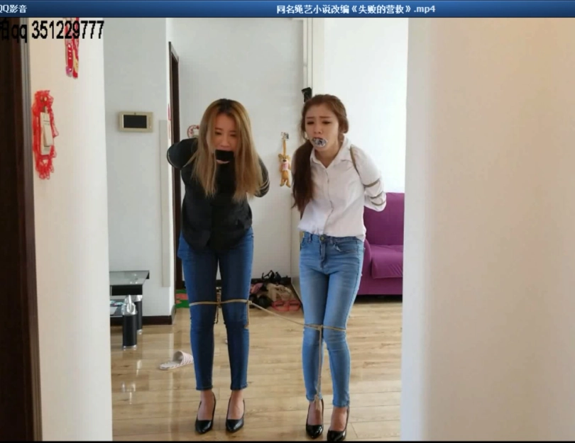 【视频时长】:00:47:10 【文件大小】:1604MB 片长48分钟,1080p全高清拍摄。剧情根据同名绳艺小说改编,原剧本如下 劫匪敲门 1:谁啊 开门,劫匪进来 1:不许动,老实一点,我是逃犯 1:你要干什么 匪:我越狱了,走投无路,要拿你当人质 1:好好,你别冲动,我听你的,我不跑 匪:给我老实一点, 1:好,我知道,我跟你走,你要是不相信我可以把我绑起来 匪:老实点,不然没有好下场,把绳子给我 女孩将绳子递给歹徒,然后转过身,歹徒对女孩进行搜身(意思一下即可) 然后歹徒让女孩跪下,将其五花大绑,绑的时候女孩不断挣扎 匪:看你不老实,得用个好东西把你嘴堵上 歹徒在女孩的屋子中找到内裤揉成团将女孩嘴堵上,将盘好的头发解开 匪:怕你乱跑得把腿也绑上 土匪在模特1的大腿上绑上一条绳子,让模特1只能迈小碎步前进 警察出场 模特2穿白衬衫牛仔裤,带枪和绳子,马尾,进行检查,敲门,劫匪开门 匪: 不许动,你给我老实一点,我手里可有人质 2:放开人质,马上投降 匪:要想让人质活命按我说的做 2:你要干什么 匪:把枪给我放到裤兜后面,举起手一点点过来 匪:老实点 模特2照办 匪;跪下,手背后,劫匪对模特2搜身 歹徒把模特2五花大绑 匪:哈哈,还想和我斗 2:混蛋,你已经无可救药 匪:把你嘴堵上,看你还怎么乱骂 歹徒再对模特2进行搜身,从裤兜中搜出内裤,揉成团堵嘴 匪:你武艺高强,得把你腿也绑上 土匪在模特2的大腿上绑上一条绳子,让模特2只能迈小碎步前进 将其嘴堵上后,用绳子将模特1,2 连在一起,将其押走 电话响起 到了新地方 匪:老实点 这个时候,电话响了 匪:知道怎么说嘛 1:好,我知道 土匪给女孩听电话 1:我现在有点事,一会给你回电话 土匪解开模特2堵嘴 匪问模特2:老实点,说出你们的部署在什么地方 模特2:士可杀,不可辱,你休想知道 匪:好啊,那让你尝尝苦头,按我说的做 模特2:哼,想得美,我是不会屈服的 匪:你给我老实一点,不然我杀了人质 模特2:好,我听你的 驷马鞭打 从这段开始模特1,2 将会换成体操服 歹徒拿出体操服 匪:你们两个把这两件衣服换上,我要好好玩玩你们 歹徒先将模特1松绑,模特2不松绑 匪:你听好了,好好给我换,别跑了,你跑了她就没命了 模特1:好,我不跑 模特1换好体操服回来,将头发扎成马尾 模特1:我完全配合你,我不跑,你把我五花大绑起来吧 匪:老实一点,跪下,手背后,歹徒将模特1五花驷马(勒颈绑)起来 绑好模特1之后歹徒将模特2松绑 匪:给我老实点,别乱跑 模特2换好体操服回来,头发是披发 模特2:来吧,我看看你到底能把我绑多紧 匪:跪下,手背后 歹徒将模特2五花驷马(勒颈绑)起来 歹徒用鞭子对模特1,2,不断鞭打 匪对模特1:哈哈,不说就让你同伴受苦 模特1:救命,救命 模特2不断挣扎,嘴里大骂:混蛋,有什么冲我来,放开她 匪:让你叫,说完用内裤将模特2堵上嘴,并用鞭子不断鞭打 同时将模特1也用内裤堵上嘴,与模特2并排放一起 驷马对话 匪:我累了,我要去睡觉,我身上可有炸弹,你们想好 土匪去睡觉,她们两人不断挣扎把堵在嘴上的内裤给拿下来 2:对不起,我没保护好你,害你被五花大绑了 1:没事,我才连累你了,刚才土匪拿我当人质,才还得你也被五花大绑起来 1:歹徒绑的太紧了,我脖子,手,都勒的生疼 2:唉,没事,不用害怕,现在考验我们的时候到了,一定有人来救我们,我浑身也动不了 生死抉择 土匪起来,匪:哈哈哈,你们考虑的怎么样了,是想死,还是想活命,你们自己看着办,你们考虑考虑 1:土匪太凶残了,我们还是先稳定住他的情绪,保命要紧 2:我同意,我们先按照他的要求去做,一定会有人救我们的 1:一会我们一定都会被五花大绑这押送出去,到时候一定多挣扎,吸引别人注意 2:好,我们小心点,歹徒到时候肯定把我们绑的特别紧,别多做无谓抗争激怒歹徒 匪:你们考虑的怎么样了” 2:我们做你人质,跟你走 模特2换衣服,捆绑 从这段开始模特2换回T恤加牛仔裤 匪:想得美,你给我老实点,你们都得跟我走,得一个一个的松绑,换衣服 2:那好,我答应你,让我换一件衣服,这么出去太明显了 匪;好,别耍花招 1:让我也换件衣服吧,我也跟你走,只要不杀我就行 匪:好,那一个一个来 匪对模特1说:你给我老实点,你要跑了,他就死了 2:我知道了 歹徒将模特2松绑,模特1不松绑 模特2换上黄色衬衫,蓝色牛仔裤,披发,土匪守在门口,对其搜身 2:绑上我吧,这样押送方便,我这有内裤,你可以用它堵我的嘴 土匪对模特2进行搜身然后跪下,将其五花大绑 模特1换衣服,捆绑从这段开始模特1换回T恤加牛仔裤 歹徒将模特2绑好后,将模特1松绑 模特2对模特1将:我绳子压着头发太难受了,你帮我把头发盘起来吧,我手被绑着动不了 模特1帮模特2把头发盘起来,土匪用内裤和胶带将模特2嘴堵上 模特1穿回T恤加牛仔裤,披头发 模特1:把我五花勒颈绑吧,求你了,千万别伤害我,我不乱叫,我兜里有内裤,可以把我嘴堵上 土匪对其搜身,(意思一下即可) 匪:跪下 然后对其进行五花大绑,用内裤和胶带堵住模特1的嘴 然后土匪在模特1,2的大腿上各绑上一条绳子,让他们只能迈小碎步前进,直接押送走 全部枪毙 进入卧室,土匪解开他们的堵嘴 2:你带我们去哪 匪:哈哈,你们知道太多了,得死 1:你卑鄙,不是放过我们吗 匪:哈哈,晚了 歹徒让两人跪下,然后枪毙.... ![]() ![]() ![]() ![]() ![]() ![]() ![]() ![]() ![]() ![]() ![]() ![]() ![]() ![]() ![]() ![]() ![]() ![]() ![]() ![]() ![]() ![]() ![]() ![]() ![]() ![]() ![]() ![]()