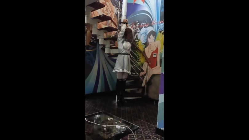 有件比较意外的事是一根皮带被伪娘挣扎时绷断了,视频里可以看到……