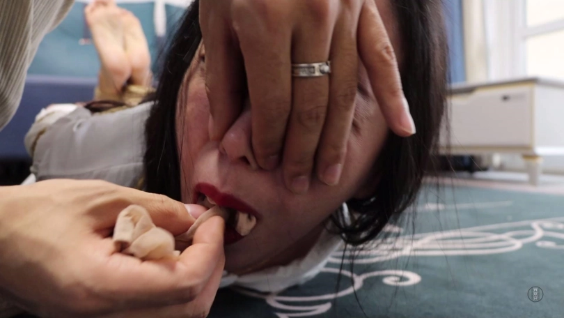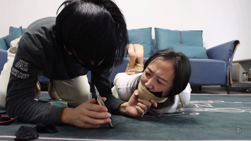 【视频时长】:00:21:39 【文件大小】:1603MB 文清在家遭遇拿枪劫匪劫持,劫匪将文清手脚简单捆绑后把一双黑色短丝袜塞入她口中,而后去文清家屋里翻找财物。 文清坐在地上拼命挣扎,经过一番努力终于挣脱手腕捆绳,迅速给脚踝处捆绳解开,打算拽出嘴里黑色短丝袜呼救,没想到劫匪从屋里出来正好目睹这一幕。 劫匪将文清上身五花大绑,双腿脚踝重新并拢捆绑好,并在此基础上捆成驷马姿势放置在沙发前地上。 为了惩罚文清之前想跑,劫匪扒掉文清脚上穿的一双肉色短丝袜,拽出文清口中黑色短丝袜丢掉后捏住文清鼻子强行把这两只原味肉色短丝袜塞到文清口中,并拿黑色宽胶布剪下5张封在文清嘴外,用黄色胶带缠绕多圈,最后用肤色弹力自粘绷带缠绕多圈封严实。 劫匪故意拿手机给文清拍照,还拿给她看进行羞辱,愤怒的文清瞪向劫匪呜呜呜直叫,劫匪一看文清还敢瞪他,气的用眼罩将其蒙眼,而后带着抢来的财物离开。 文清扭动身体在地上来回呜呜呜闷哼挣扎,可这次不管怎么挣扎绳索纹丝未动,始终无济于事,最终精疲力尽的她减小挣扎幅度,低下头躺平等待家人回来解放她。 ![]() ![]() ![]() ![]() ![]() ![]() ![]() ![]() ![]() ![]() ![]() ![]() ![]() ![]() ![]() ![]() ![]() ![]() ![]() ![]() ![]() ![]() ![]() ![]() ![]() ![]() ![]() ![]() ![]() ![]() ![]() ![]() ![]() ![]() ![]()
