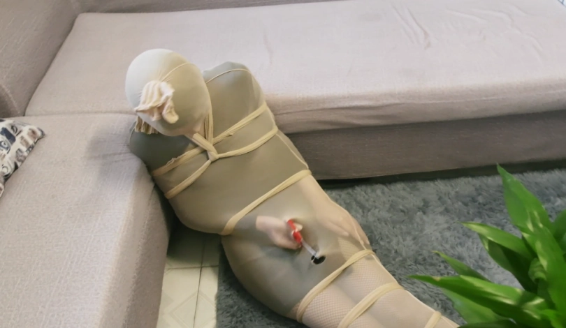 海星下班回到家中,不知道哪里掉下一条丝袜,然后她被丝袜包裹住,怎么都挣脱不开,并被绑了手脚勒了嘴巴,最后又从天而降一把剪刀,废了九牛二虎之力解开后,海星气喘吁吁瘫在沙发上,这时候又掉下来一条丝袜,海星不禁喊了一句:“还来?”