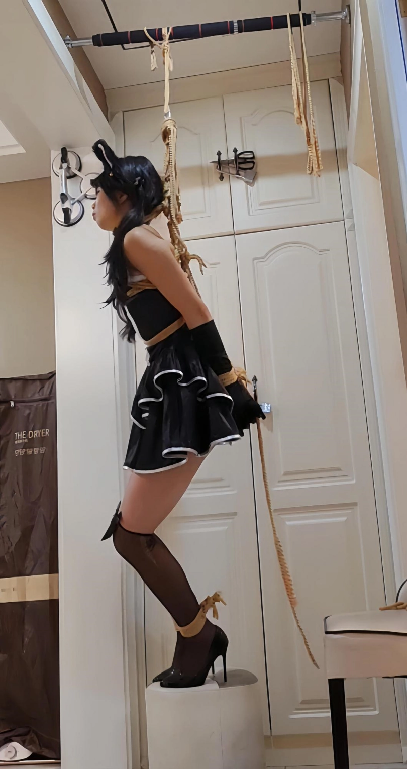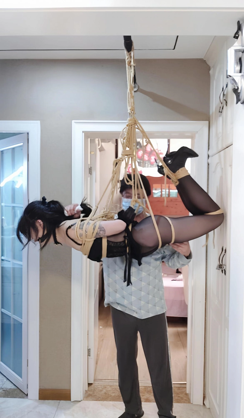 这次蒙面大叔把小m驷马吊绑了起来,可能是哪里没有绑好疼得妹妹一直嗷嗷大叫,由于太过刺耳,大叔只好拿来丝袜和口球把妹妹的嘴给堵了起来,然后剩下的就只有眼泪和呜呜声了,大叔觉得还不过瘾,又去拿来了妹子最喜欢的棒子,不停的刺激她,这个过程可能就是传说中的痛并快乐着吧