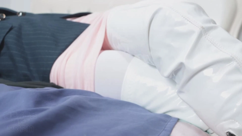 而且这次是西装外套搭配包臀粉裙,白丝加白色过膝长靴!