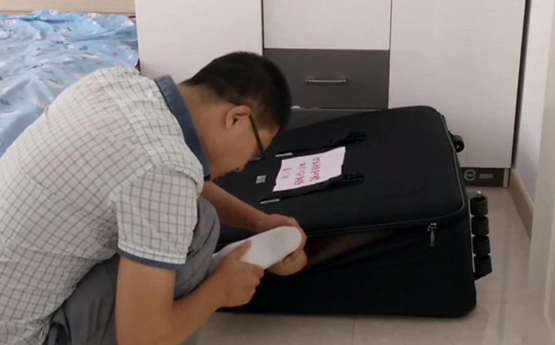 我是一个舔脚恋足狂,每天每时每刻都在寻找猎物,这个周末我花高价买来的“精品”到货了.....打开行李箱里面竟然是一位美女,她穿着红色帆布鞋,诱人的白袜和粉嫩的美脚映入眼帘,迫不及待的我马上打开水龙头把这只美脚洗干净,然后扒掉她的裙子慢慢品尝这绝世美味,最后我又拿来菜板,听说美女的脚剁下来烹饪一下会更美味,今天我就来尝试一下....