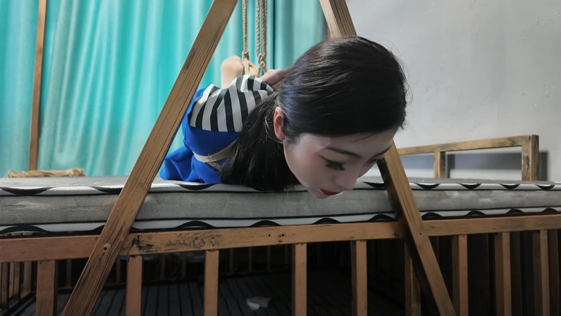 女犯李佳佳被各种刑法审讯,大字捆绑,后手吊,老虎凳,后手观音驷马放置,最后关笼子