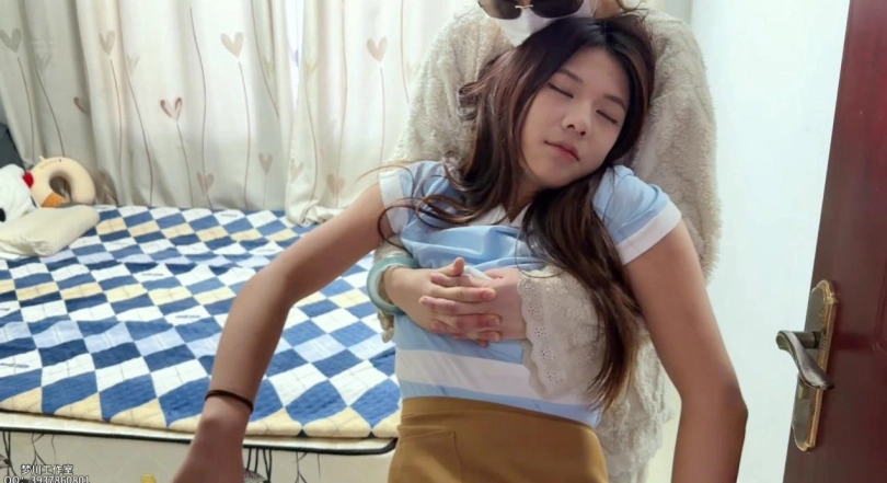 灵儿穿好利来裙子,被凶手双手反绑坐在凳子上腿放床上,逼问密码灵儿不说凶手用保鲜膜缠住头部 凶手再次捆绑灵儿 逼问密码,但是凶手脑凶成怒用胶带紧密封住灵儿口鼻 导致灵儿不能呼吸,灵儿拼命挣扎 最后被活活闷晕 凶手把死者放在旅行箱里后离开工作室