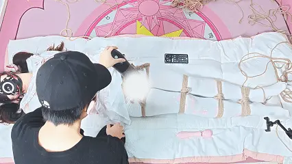 临结束之时再次被绑成驷马放置在地面,侧身翻过玩弄……