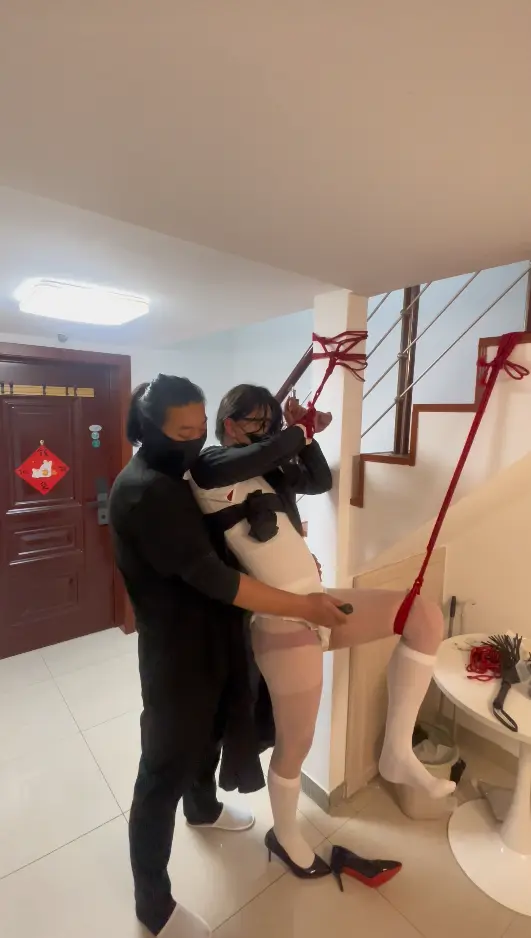 白丝小腿袜的小男娘无助的被捆绑在柱子上,双手举过头顶被捆着,毫无保留的露出无法反抗的样子给缚手