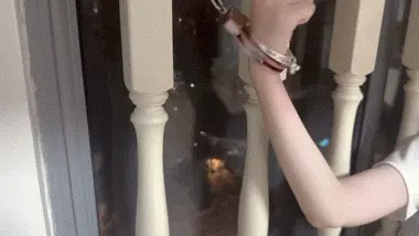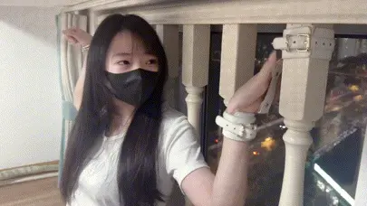 分别用手铐和绳子把困困双手固定在栏杆上的逃脱,一开始先是用比较简单的手铐,把两只手分别铐在了栏杆处,不过有一个是那种皮革手套,上面有链子可以解开,所以很轻松地就解开了一只手嘿嘿…另外一个手用正常的手铐铐住,就不太好解开了,但是难不倒困困,比较吃力地用脚把钥匙够到了,成功脱困。然后换成了绳子,emmm,绳子就很难解了,主要两只手分开两侧被绑了起来,只能尝试单手解绳子,但闺蜜绑得太紧了,手脱不出来,绳结又在栏杆后面…最后只能求饶惹…