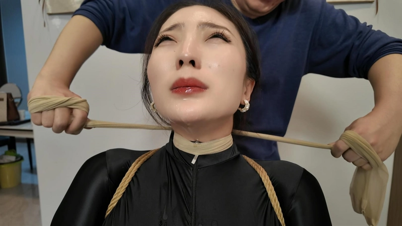女特工偷偷潜入进行搜查,被小弟抓获,揉胸,捆绑起来鞭打拷问,老大回来,继续拷打,绑到椅子上面丝袜勒颈,口水流了一身,接下来绑到柱子上继续拷问,没想到女特工身上竟然藏有定位器,于是恼羞成怒的命令小弟用丝袜勒女特工,老大拿刀捅向女特工,杀害之后两人仓皇逃跑