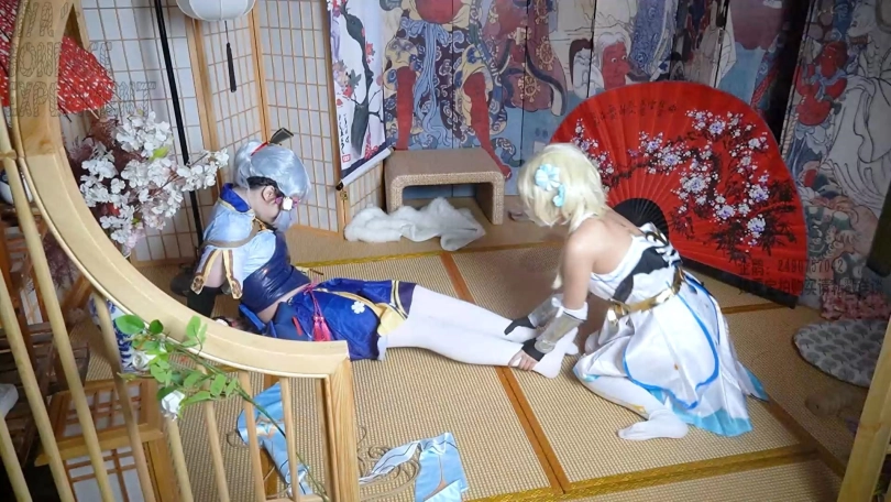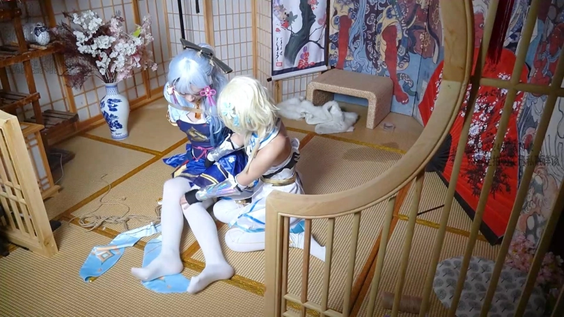 旅行者来找白鹭公主玩,双方开始只是互相抚摸和TK,但两人都觉得不过瘾,决定尝试一些新玩法,荧被神里绫华绑了起来,开始了新一轮的腿足的玩弄,后续将荧解开后神里绫华也尝试了这种待遇,解开后两人关系更加亲密了,最终和拥而眠