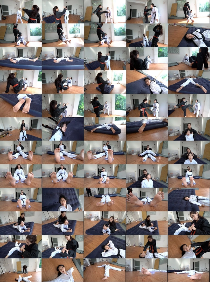 Mimi (Black) and Anna (White) face each other in a martial art fight. This is part 2 which Mimi takes revenge on Anna. Mimi uses various Karate techniques to destroy poor Anna. Each time Mimi knocks Anna out, Anna makes white eyes and tongue out. Mimi finally finishes Anna and sends her to heaven at the end of the video. This video is excellent for, foot fetish, karate fight fetish, and KO fetish fans. Resolution:4K(3840×2160),fps:24 Duration:16m13s ![]() ![]()