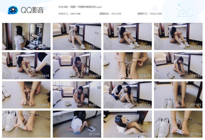 【视频时长】:00:16:58 【文件大小】:2466M 关键词:阿狸 家中自缚 拴住 遇坏人被玩弄 走不了 手铐 脚铐 拇指铐 脚趾铐 休闲装 小白鞋 团缚 妹子下班回来,见到一副脚镣和钥匙,想玩点刺激的,钥匙藏在远处,把脚拴在柱子上。等了好久都没有人来,妹子睡着了。这时脚镣的主人回来了,见到有个美女自己把自己锁了起来,很开心,将计就计。拿走了钥匙,脱下鞋袜,把妹子脚趾、脚腕锁住,离开。妹子醒来,十分惊异,着急,各种挣扎。坏人再次出现,背后锁住妹子手、拇指,离去。留下妹子挣扎。 这个妹子真的是女神!!!高颜值不说,气场也十足!!! ![]() ![]() ![]() ![]() ![]() ![]() ![]() ![]() ![]() ![]() ![]()