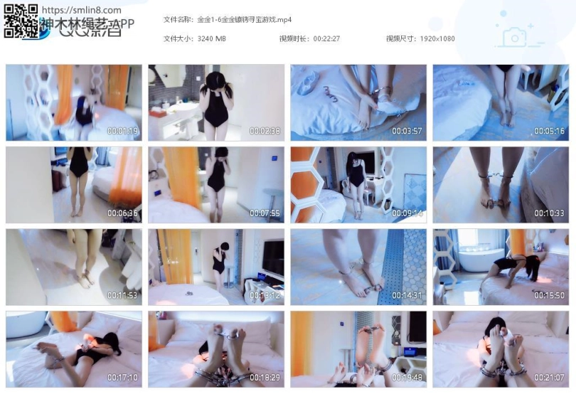 【视频时长】:00:22:27 【文件大小】:3240M 关键词:金金 镣铐 游戏 手铐 脚铐 脚趾铐 芭蕾服 芭蕾鞋 水晶袜 自缚 堵嘴 驷马 妹子刚回来,看到了桌上的字条,有一个镣铐寻找游戏,找到哪些就把他们锁在身上。妹子觉得很好玩,决定参与。妹子找镣铐,先找到一把链铐,锁在脚腕上,走走。然后找到一个链子脚趾铐,脱下鞋袜,锁在脚趾上。妹子慢慢行走,找到一个脚趾铐,锁在了脚上。妹子最后找到一个手铐和三通,决定玩个刺激的,在床上驷马镣铐。袜子堵嘴,趴在床上,手铐锁住手,三通锁脚连接手脚。妹子很享受整个过程,很开心。妹子觉得有点难受了,却怎么挣扎也弄不开,着急了,要哭了。 ![]() ![]() ![]() ![]() ![]() ![]() ![]() ![]() ![]() ![]() ![]()
