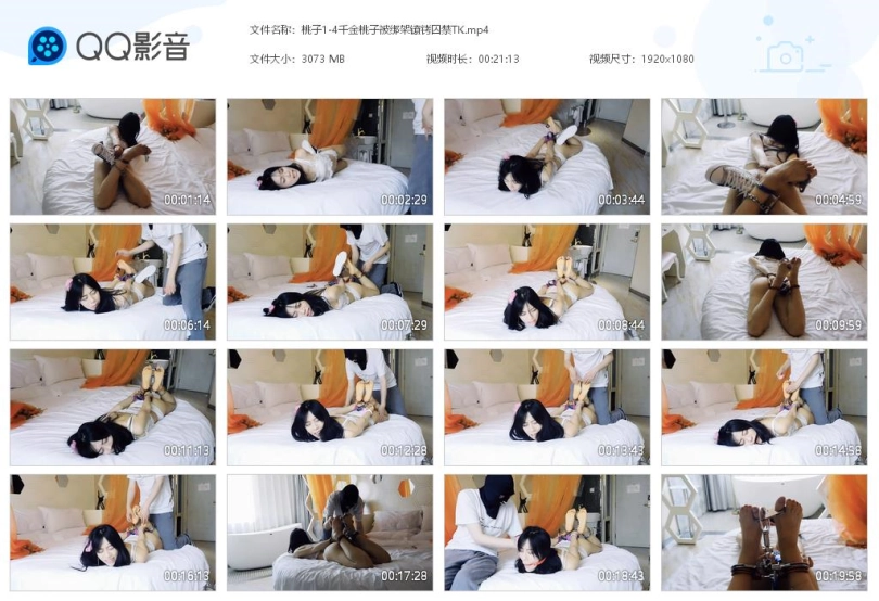 【视频时长】:00:21:12 【文件大小】:3073M 关键词:千金桃子 被绑架 镣铐囚禁 TK 手铐 脚铐 脚趾铐 蕾丝内衣 帆布鞋 棉袜 口球 超级千金大小姐桃子被绑架啦!!!绑匪不仅心狠手辣,拿了赎金还要撕票,还是个死变态,不但各种驷马镣铐,还各种乱摸!!!我想说,摸起来真的好舒服啊哈哈哈!!! 妹子醒来,发现被绑架了,一只脚的鞋袜被脱下,钥匙锁在脚趾铐上,双手锁在一只脚上,另只脚用脚镣绕其一圈,很难受的姿势。坏人回来了,给妹子塞入[不可描述],离开。妹子十分难受,各种挣扎,发现了钥匙,企图够到钥匙却办不到。坏人回来了,手伸进内衣里一通乱摸,妹子大呼。坏人给妹子解开,驷马铐住,钥匙仍然锁在一只脚趾上。妹子更难受了,各种挣扎,企图够到钥匙却办不到,很害怕,哭了。坏人又来了,解开挂着的钥匙,拿出三通把脚腕脚趾连起来,挠脚心,玩耍妹子。换个角度,挠脚心,玩耍妹子,然后给妹子带上口球,离开。妹子十分害怕,挣扎,哭了。 桃子大美人不多说,表现力也是极佳,可以说是我拍过最漂亮的模特!!! ![]() ![]() ![]() ![]() ![]() ![]() ![]() ![]() ![]() ![]() ![]() ![]() ![]() ![]() ![]() ![]()