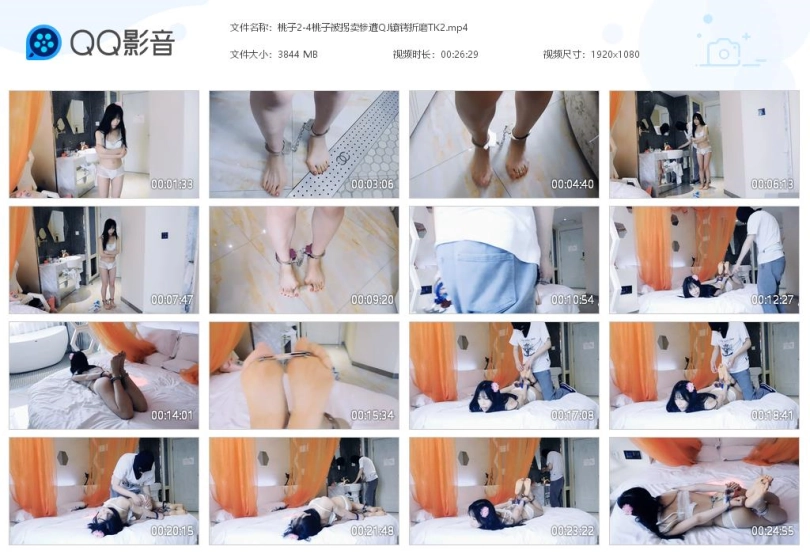 【视频时长】:00:26:29 【文件大小】:3844M 关键词:桃子被拐卖 惨遭QJ 镣铐折磨 TK 2 手铐 脚铐 脚趾铐 蕾丝内衣 板鞋 [不可描述] 口球 眼罩 买家拉着妹子进了自己家,妹子被戴着脚镣。买家脱下妹子鞋袜,塞入[不可描述],要求妹子走路算作惩罚,妹子不听,被鞭打。妹子最终妥协,走路算作惩罚。买家给妹子换上戴上脚铐和脚趾铐,要求妹子继续走路,妹子又不听,又被鞭打。妹子走路,很难受很委屈。买家把妹子抱[X_X],驷马铐起来。妹子很难受,一直在求情,一直要哭。买家觉得妹子很烦,决定挠脚心惩罚一下,挠了一会妹子就老实了。买家想今天就爽一把,于是脱掉妹子衣服,解开内衣,弄下内裤,准备强暴妹子。完事后,把妹子衣服整理一下,给妹子弄上铁内裤,戴上口球、眼罩,然后离开。妹子说不出话也看不到,想着还没那啥了,万念俱灰。 桃子大美人不多说,表现力也是极佳,可以说是我拍过最漂亮的模特!!! ![]() ![]() ![]() ![]() ![]() ![]() ![]() ![]() ![]() ![]() ![]() ![]() ![]() ![]() ![]() ![]()