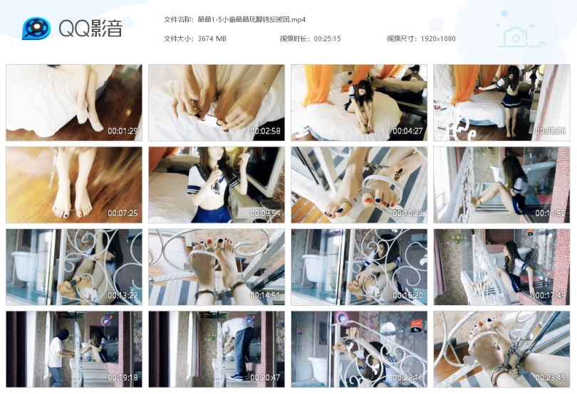 【视频时长】:00:25:15 【文件大小】:3674M 关键词:小偷 晶晶 玩脚铐 被困 手铐 脚铐 脚趾铐 水手服 帆布鞋 自缚 晶晶改行做小偷啦!!!只是她算是个笨贼哈哈哈,见到好玩的东西就给自己戴上,把自己的双脚锁进了栏杆里,却没有带钥匙,这下动不了可麻烦了哈哈哈!!!失主回来正好被抓现行,小偷生涯结束!!!晶晶用悲惨经历告诉我们,莫伸手,伸手必被抓!!! 妹子是个小偷,偷偷进入事主家,脱下鞋子,穿着袜子各地翻找偷东西。当妹子偷的差不多之后,翻到一个脚趾铐、一个板铐和两把钥匙,妹子十分好奇,想了想,认为是锁脚上的,然后就锁在了脚上。妹子觉得太好玩了,玩了一会下地走了走,然后用钥匙又解开了,于是拿着脚趾铐、板铐和钥匙(但钥匙却意外掉落了),去另一个地方。妹子盗窃成功,十分开心,并且十分嚣张,想继续玩耍脚趾铐。妹子找到一个柱子,脚趾穿过去,锁上了脚趾铐,再锁上板铐,玩了一会。当妹子玩够了,想拿出钥匙打开时,发现钥匙不见了,回忆了一下,钥匙掉了,这下妹子可着急了,脚趾被困住拔不出来,等下事主回来肯定就被抓现行啊,妹子十分着急。妹子各种努力拔脚趾铐,却无济于事,十分后悔,想着事主来了一定被抓十分难过。失主回来了,看到眼前的一切,又见到被困住的妹子。妹子坦白了,希望事主能放过她。然而事主很生气,于是决定惩罚她。事主拿出三通锁上妹子,锁上手铐吊起来,惩罚小偷。妹子挣扎求饶,但最终失主还是决定将小偷送到警局,妹子哭了出来。 ![]() ![]() ![]() ![]() ![]() ![]() ![]() ![]() ![]() ![]() ![]()