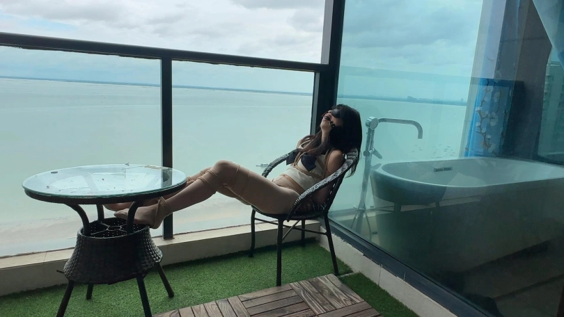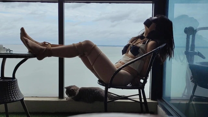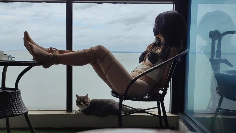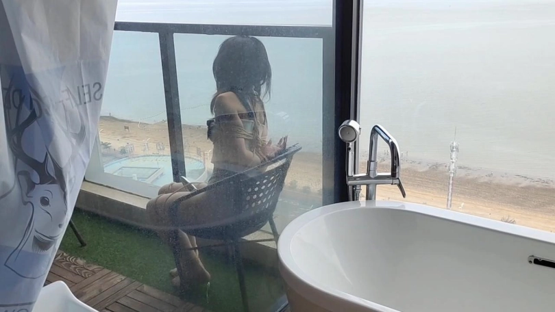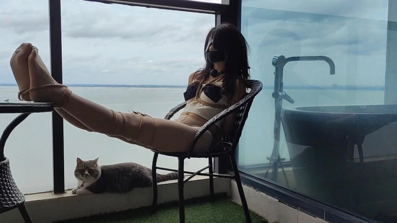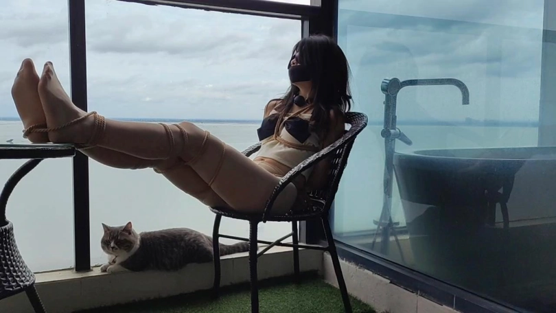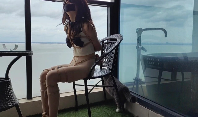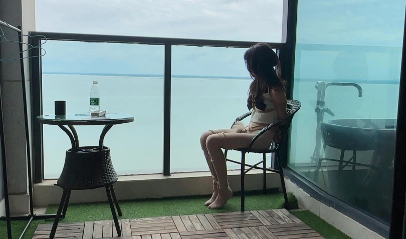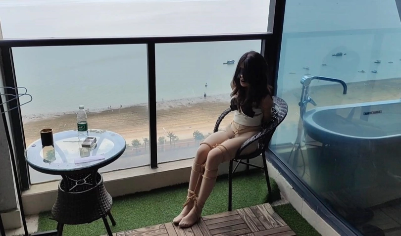 海边的风景是挺好看的,丫丫特别喜欢,于是大叔把丫丫绑在阳台上,让她看个够,但是过分的是习惯性的把眼睛蒙上了,这下就整得尴尬了,好的她很是生气