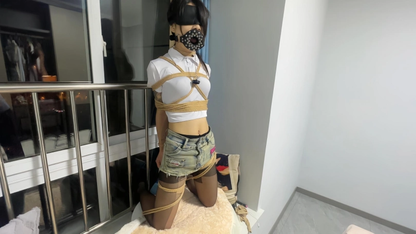 刚放学回家的m,没没来得及反应,一进门就被大叔捆绑到了飘窗上新安装的木桩上穿了一天的黑丝直接折叠退,跪到展台上,然后反绑固定到了木桩上,口球,口塞,丝袜蒙嘴,然后再加上必要的几个强力玩具过后,大叔便独自去客厅看电视去了,留下m独自享受,,,许久许久以后,m大汗淋漓之时才进去开始一系列的tiaojiao。