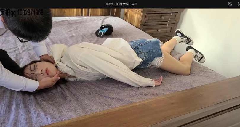 白袜女贼入室行窃被打晕,男主看其美貌又穿着白袜顿生歹意开始猥亵玩白袜脚,不料女贼中途醒来大喊救命,男人失手将其[X_X]索性拖进卧室开始玩弄....