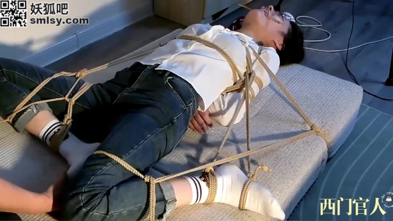 清纯美丽的小姐姐体验绳艺紧缚,简单的胸缚放置再将脚连接到身上,然后全身固定在垫子上。[戴眼镜是真有感觉]夹住舌头挑逗她
