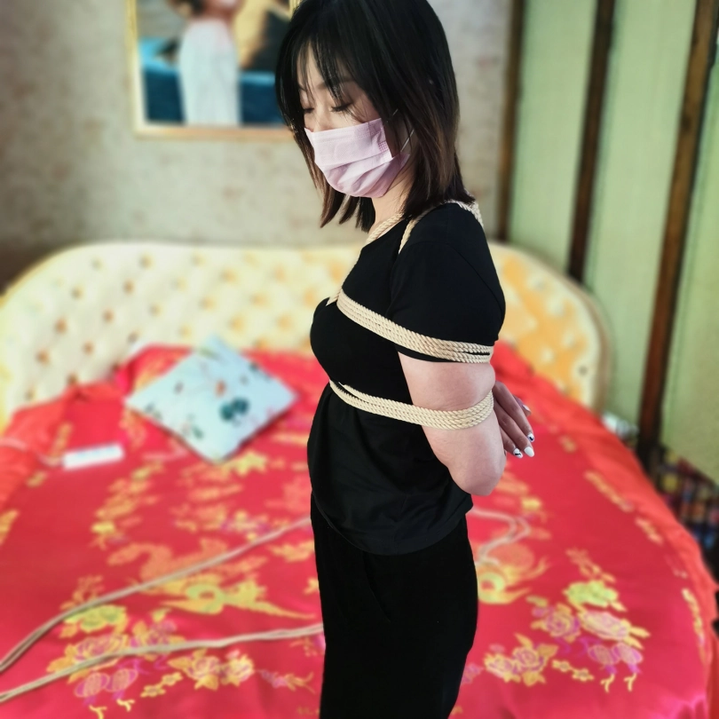新人凌熙,疫情期间无聊,过来体验捆绑。身体柔韧度还不错,第一次面对镜头就很放得开,绑上之后还挺开心,在镜子面前照来照去,捆绑过程琳洛在一边观看学习(估计是对女绳师感兴趣,想当绳师吧)。