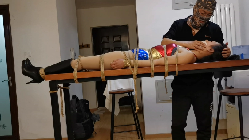 被迷晕后放到长桌上固定捆绑,脱靴,强制闻原味白棉袜,TK刺激呻吟。。。