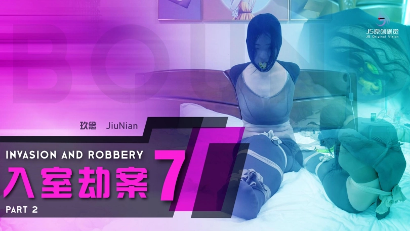 劫匪命令女孩脱去外套。并让她将一条开档的连裤袜当作上衣穿在身上。女孩的两条腿也被套在一条连裤袜中。劫匪用一天条裤袜将女孩的手臂背在后面,套在里面。并用多条丝袜将她捆绑起来。做完这些劫匪并没有打算停下的意思。他将女孩穿了一天刚脱下来的棉袜塞进了女孩的嘴里,并用丝袜套在她的头上。女孩无助的挣扎着。但袜子强烈的味道熏的女孩没有力气挣扎,无力的在床上躺着。。。
