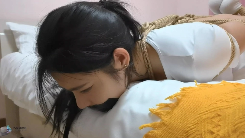 美女挣脱束缚,向门口跑去,但很快被一条绳子缠住脖子,并将她拖回房间力。当画面再次亮起时,玖念的四肢被紧紧的库捆绑起来。她只能用被捆绑的四肢支撑,在床上爬行。这时一个马具型口球出现在她面前。正当她惊慌并好奇这是什么东西时候。口球自己移动并塞进了她的嘴里。可怜的玖念终将被一只囚禁在这个奇怪的房间里。