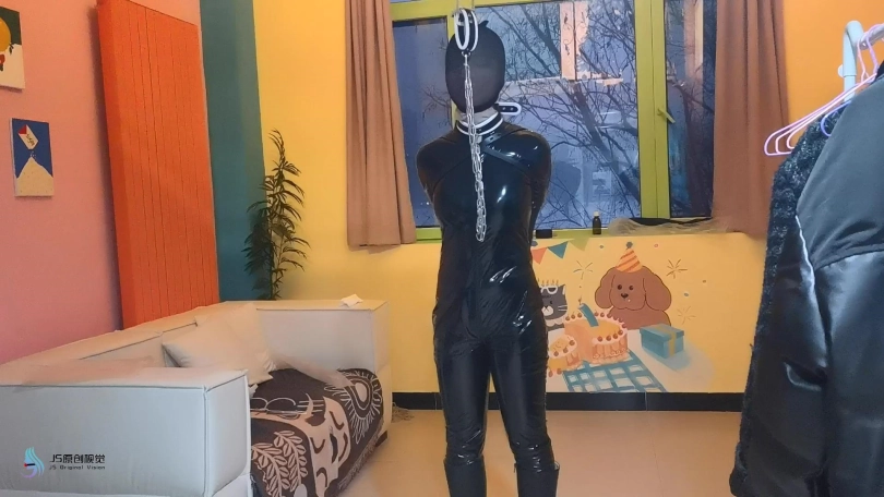 老狼将梦琪从椅子上解开。将她的双手用单手套拘束着,脖子处考上铁链,这样一直让她站着。过了一段时间,老狼将她放在沙发上,解开脚铐,并脱掉她的靴子,不断的玩弄着,挠她的脚底。受不了的梦琪说出了全部底细。最终失去利用价值的她被老狼干掉。。。