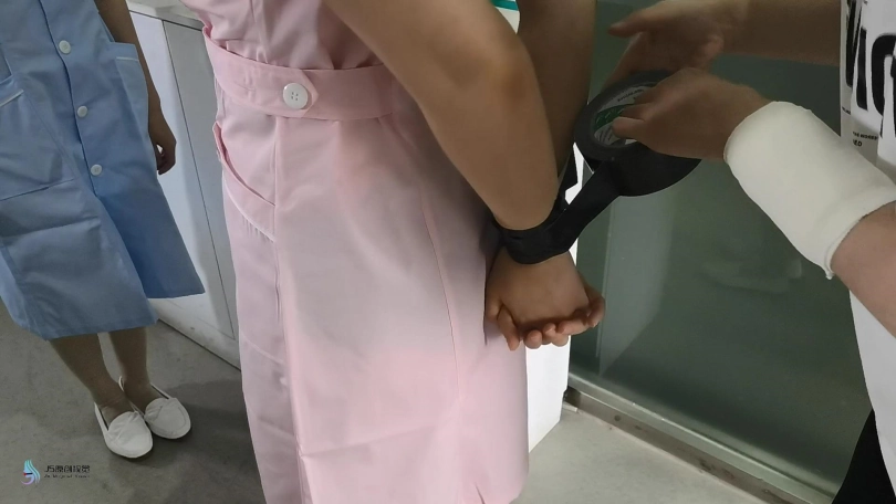 【视频时长】:00:42:47 【文件大小】:1930MB 这是国外的一同好在我这里定制的三部作品,我称为《危机三部曲》,也许以后这位朋友还会定制新的危机系列,也可会有别的系列。这位朋友的剧本都很精彩,我会尽量要回版权,发布出来给大家欣赏。这部《诊所危机》我认为也是最精彩的一部,演员阵容庞大。另外两部危机作品分别是《空姐危机》和《办公室危机》。感兴趣的朋友可以去我的主页或文字搜索。 ----演员表---- 劫匪/职员:露楠 医生:蓝煊 护士A:艾菲 护士B:宫怡 病人:晓凡 ----内容简介---- 一个强盗被警察追踪,他的左臂受伤了,正在寻找治疗。他闯入了一家私人诊所。在私人诊所里,有两个护士和一个医生。护士A站着在入口附近的护士站,护士B在化验室,医生在手术室。劫匪假装成病人,走进诊所,向护士站走去。护士A检查了他左臂上的伤口说那是枪伤我们的诊所需要向警方报告。然后抢劫犯用刀威胁她说:“妳老实一点,我被警察追捕,只想先躲一躲,处理好伤口,然后便逃;如果妳合作 的话,不会伤害妳。这里除你外,还有甚么人。护士A说这里还有另一位护士在化验室,还有女医生在手术室内。然后抢劫犯让护士A把诊所大门关上。强盗说:“那你现在把我带进化验室内,要老实一点,不然杀了你”护士A点了点头,劫匪躲在护士A后面并以刀子威胁她到化验室门外。护士A接着说:“小丽,开一开门,这个病人需要检验血液”护士B随后打开门,看到护士A被人用刀威胁,叫她不要乱来。 强盗说:“那你乖乖配合,便没有人会受伤”。抢劫犯说完话后便以刀放在护士A背后,并从自己的背包中取出棕色毛巾命令护士A堵着护士B的嘴。然后抢劫犯让护士B堵着A护士的嘴。 在下一个镜头,护士A及护士B的手腕已被胶带绑起,嘴里被棕色毛巾堵着,只能「呜呜」地叫。抢劫犯把她们带到手术室前,跟着拿走护士A口中毛巾,并叫她向在手术室内的医生说病人已到诊症室,请她尽快应诊。护士按着强盗所说的向手术室内的医生说。医生回复并说「知道了」。跟着,护士A被重新堵嘴。 下一个镜头、护士A及B被胶带背对背绑起,坐在诊症室地上,足踝亦已被胶带绑起。嘴被毛巾堵着,痛苦地呻吟着。医生在此时正推门进入诊症室,惊见两人被绑着,心中大惊,并大叫:「发生甚么事?」。此时,在门外的强盗冲进来,从后捂着医生的嘴;并以刀架颈,并说:“不要吵,我现在堵你的嘴,之后你便替我处理伤口,老实一点,不然杀了妳。医生点点头”。 下一个镜头,医生嘴被棕色布巾堵着,足踝被胶带绑起,一边在哭泣,一边坐在诊症枱侧的椅子替强盗包扎伤口.在接近完成包扎时;外面有一名女子拍门。强盗持刀作状,叫所有人不要喊,然后便把医生的白色外袍脱下披在自己身上,假装成医生。下一个镜头,医生已被绳子于胸前交叉绑着,手腕于背后被绑起;足踝亦被绑起,坐在椅子上。嘴巴被白布勒住,嘴里仍然塞满了棕色的毛巾,3名女子互相对望,挣扎并透过堵嘴毛巾喊「救命」 下一个镜头,强盗已开门让女病人进入;女病人问为什么不是原来的女医生。抢劫犯便向她说:"她正在诊症,今天的病人很怕痛,你听现在在"鸣呜"地叫喊着。女病人点头说「是啊」。强盗带女病人进诊症室,怎料一开门便被3名女子被捆绑堵嘴的情况吓到了,正想拔足逃跑。但已被强盗用刀指吓,被迫高举双手。强盗此时说道:“现在真热闹,有4名贵宾,要想个法子好好管理你们,不让你们逃跑。」 跟着便把女病人的學生校服裙拉链拉下,并把她的裙子脱下,只剩吊带裙,白袜及黑皮鞋。强盗从背包内取出棕色毛巾并叫女病人堵着自己的嘴。强盗说:“现在我会让这位漂亮的學生妺妹替医生你先松绑,跟着医生你替护士们逐一松绑。完成后,请你们像这位姑娘一样,脱去所有衣服,只剩内衣及鞋子,丝袜也要脱去。你们要老实一点,我会一直胁持这位姑娘;要是你们不合作,我实时把她杀掉,知道了吗?」现埸所有女子均点头示意。 下一个镜头:此时,医生及病人只穿上内衣及鞋子已被黑色胶带从后绑起了手腕及足踝;并背对背被黑色胶带绑起。她们站在病房储物柜前,嘴已被黑色胶带封上。护士B双腕已被棕色胶带从后绑上,嘴里塞上棕色毛巾坐在病房近储物柜那边的床上。身上只剩胸罩,内裤及白鞋。而护士A在身上只穿着胸罩,内裤及白鞋,口里塞上棕色毛巾。强盗威胁她捆绑护士B的足踝及以黑色胶带封上护士B的嘴。完成后,强盗叫护士A把手放在背后,然后上前把她的双腕,足踝像护士B般绑上及封上嘴巴。跟着安排她并排地坐在护士B身边。强盗跟来到另一张床上并检查各女士们所脱下的衣服有藏着银行卡。看着 4 名女子在挣扎及呼叫,抢劫犯走近4个女孩,一个接一个地取走她们的堵嘴物,要卡密码。在女孩们说出密码后,她们又被堵嘴起来。抢劫犯对那些女孩说谢谢,并请她们不要报警待在病房,不要试图逃跑。那些女孩不停地尖叫着,听到强盗走后试图逃离病房。他们从病房跳了过来到主入口。 下一个镜头,护士A和护士B正坐在靠近入口的长椅上他们累了汗水在他们的脸和身体。医生和病人在此刻已挣脱了将她们俩绑在一起的胶带。医生在手脚被绑,嘴被封上管道胶带的情况下站在入口的玻璃门前,不断发出声响,希望引起途人注意。而女病人亦因体力透支,而坐在护士们对出的地面,惊恐的哭泣着,身体,面上均有汗水及泪水。 在第二早上,经过整夜