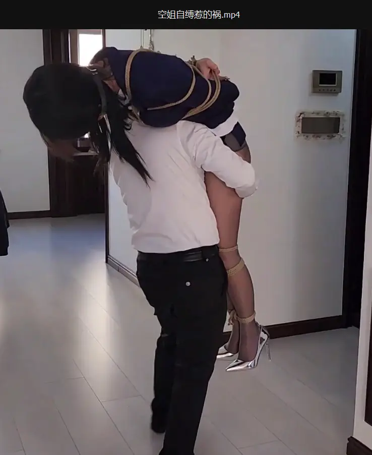 寂寞空姐在家玩自缚游戏,正当空姐捆好自己的手脚带好口球之时,变态男子持刀出现,自缚游戏变成了真正的劫持.....变态男把性感空姐全身紧缚放置,独自去找财物了....可是空姐并不老实大声呼救拼命挣扎,劫匪听到呼救声非常烦躁,于是就把空姐驷马紧捆再换上特大号口球严厉堵嘴,最后变态男又把空姐[X_X]加上股绳,扛回家中慢慢享用了