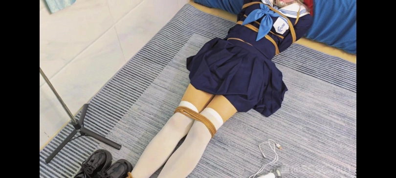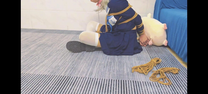 把小m捆绑后带上口球铃铛再蒙眼,没有对话,只有呜呜呜!再塞入快乐棒,将m直臂绑在身后,刺激着水手服的小m,快乐棒在刺激绝顶几次后早已瘫痪枯竭