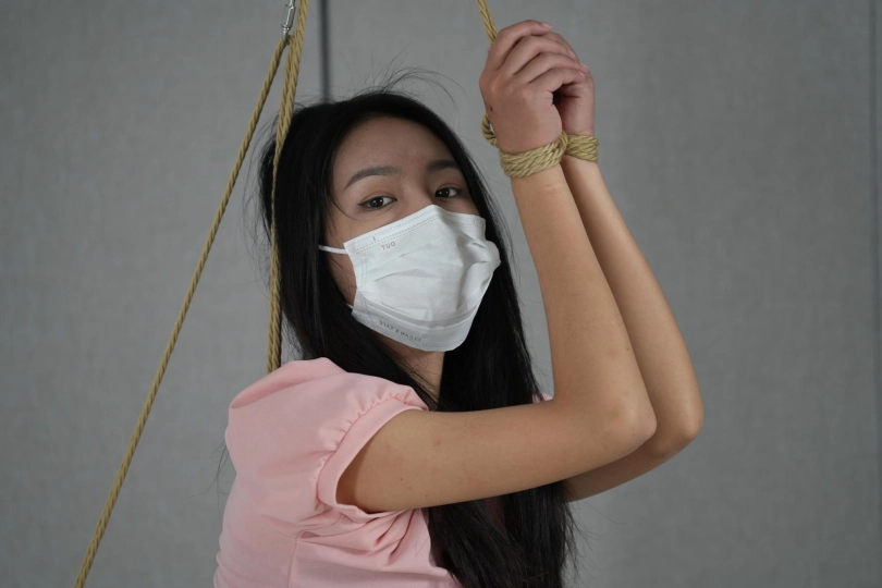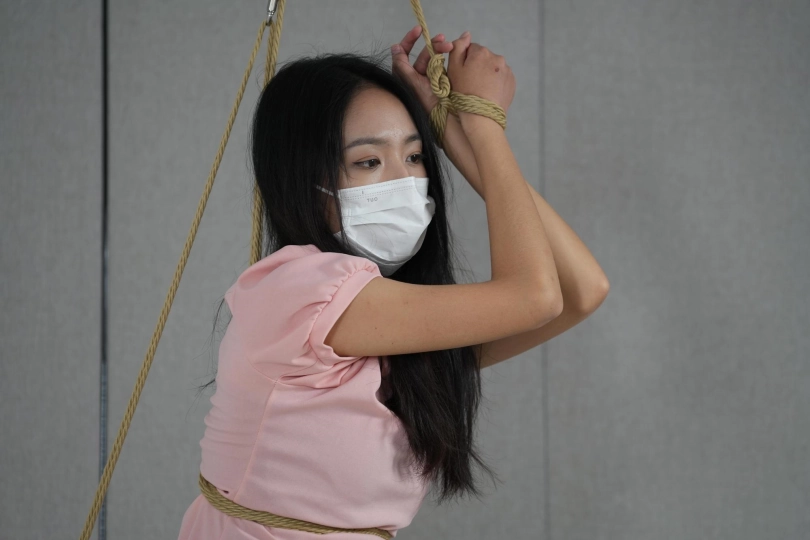 【视频时长】:00:17:04 【文件大小】:1016MB 沫沫无意中看到绳艺游戏捆绑,根据手机上的地址到达地点后有些后悔,打算打车离开时身后有个陌生人拿出绳子对她进行一系列的捆绑并告诉她要陪他完成挑战才能解开绳子;5张卡片,30秒钟记住图片中的细节,每张卡片中抽取两个问题进行提问,回答正确视为通过,回答错误接受惩罚。游戏开始了,沫沫脚下的三块砖都被抽走了,她只能踮着脚尖,胳膊上的绳子也越发紧了,胸下面的绳子格外紧,让她难受不已,此刻的她已经感觉手麻了,但游戏还在继续,双手吊缚+单腿吊缚的绑法将沫沫的身姿衬托的更为迷人,侧脸的颜值简直让人心痒痒。虽然偶尔怜惜但游戏输了还是要惩罚的! ![]() ![]() ![]() ![]() ![]() ![]() ![]() ![]() ![]() ![]() ![]() ![]() ![]() ![]() ![]() ![]()