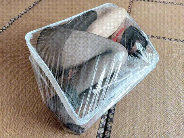 透明快递拆出黑丝少女,使用方式居然是用真空袋?