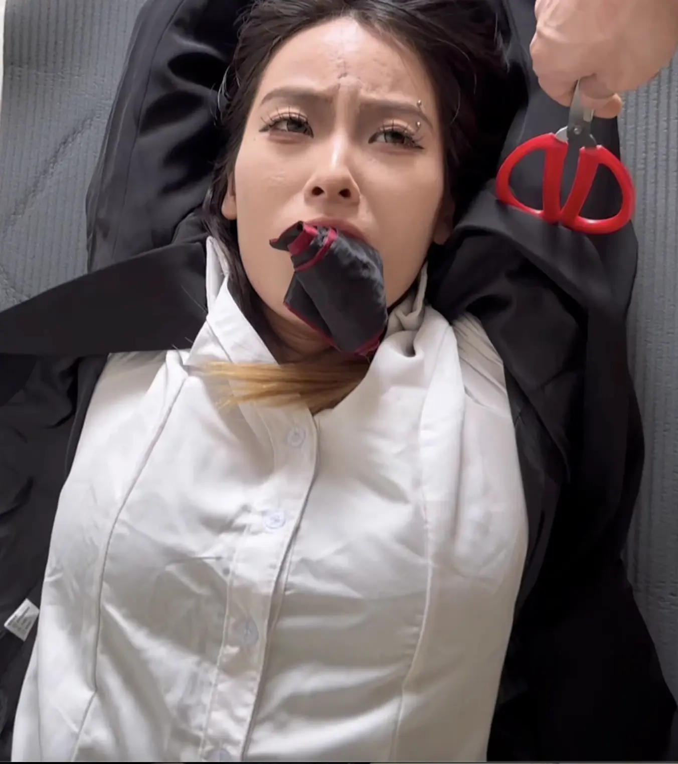 西装套裙+黑丝高跟的苏苏潜入公司盗取机密,被擒获后守口如瓶、“反咬一口”,最终被保卫小哥按到桌面上,施以破除外衣、泰山压顶之刑;内容包括迷晕、丝巾堵嘴、椅缚、绑腿、床缚等;