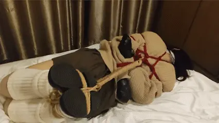 素材拍摄于入冬,JK堆堆袜露露被日式捆绑在椅子上,充气口塞堵嘴眼罩蒙眼。