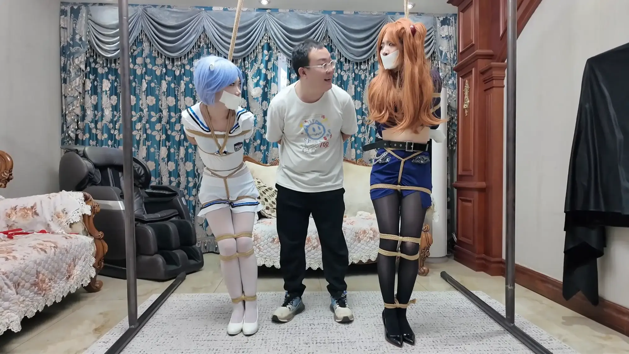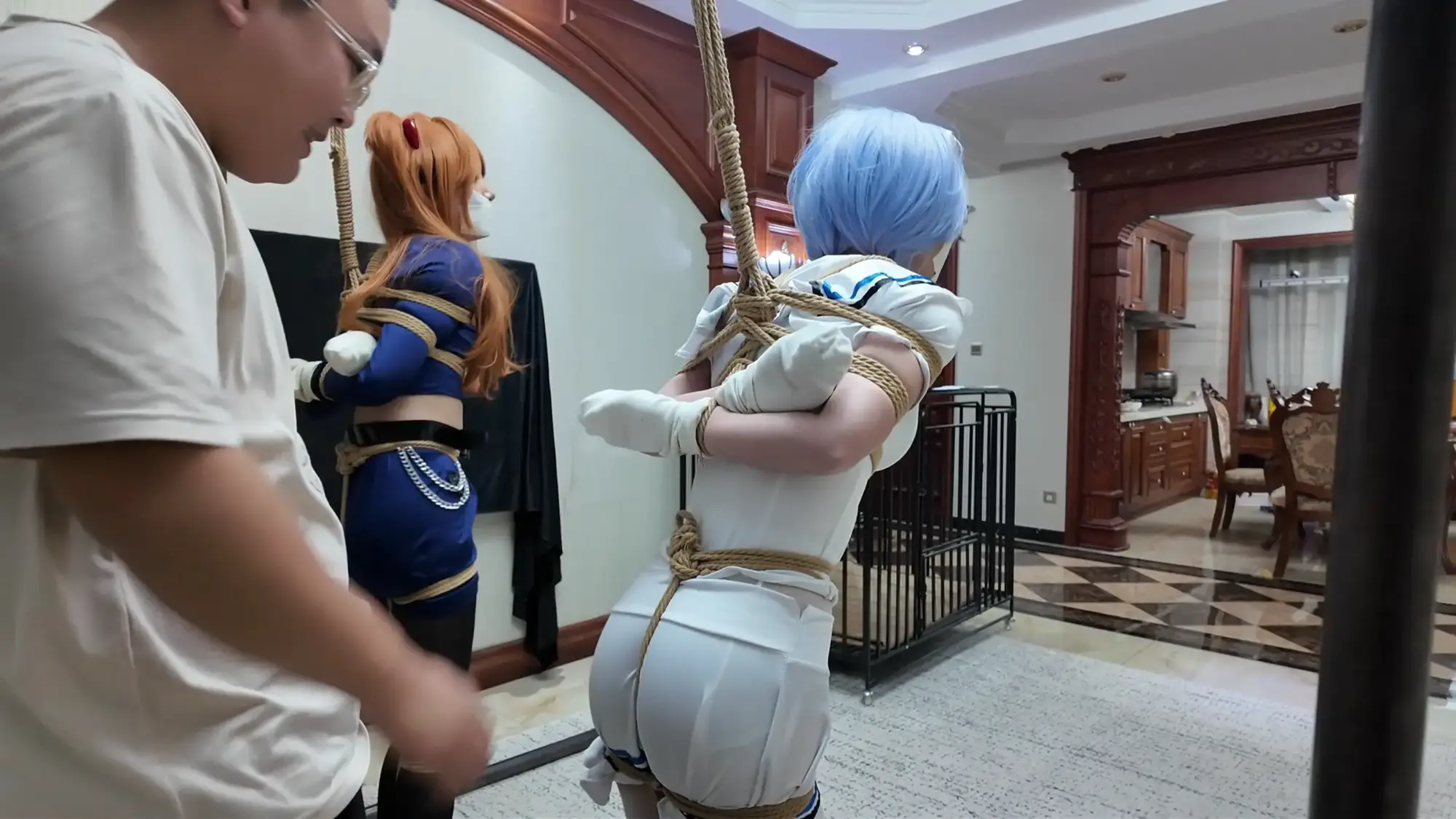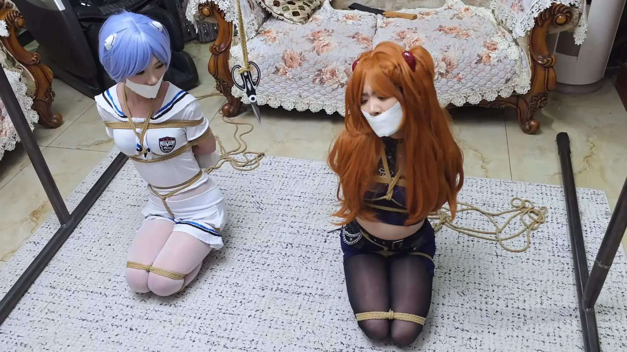 白色水手服“绫波丽”和蓝色搜查官服“明日香”的换装play!
