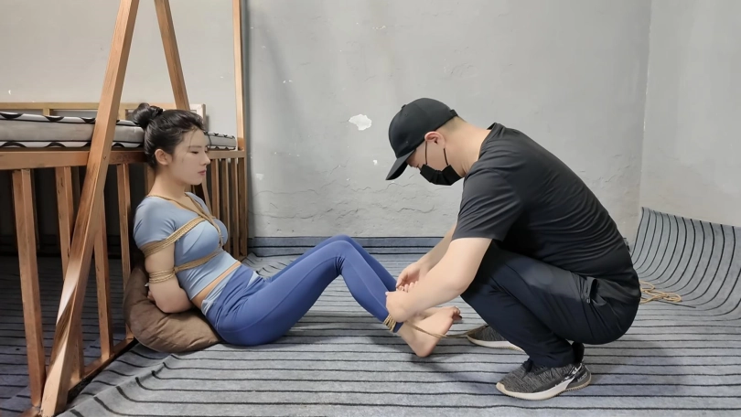 十一和男友把瑜伽教练佳佳诱骗到家中捆绑调叫,最后捆绑到房间里面囚禁,十一想和男友玩捆绑游戏,被男友分腿绑到床上,鞭打,挠痒,td,调叫到失禁