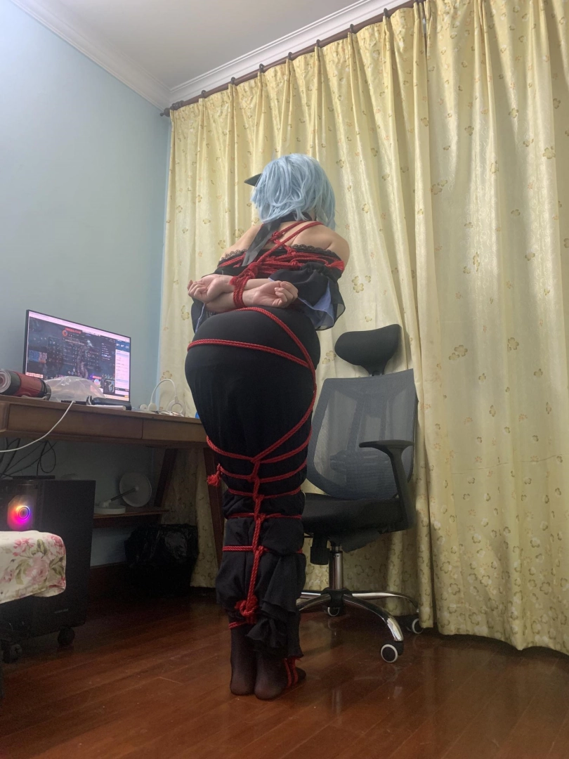 自己跳到床上躺下了,被主人摸了一遍后双腿之间就插上了[X_X],在蒙眼堵嘴和紧缚挣扎中达到了糕巢