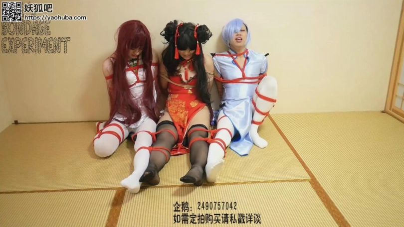 说道新年当然是旗袍了,三种不同风格的旗袍娘,还有不同颜色的袜子,一样的就是都被紧缚起来,刺激着