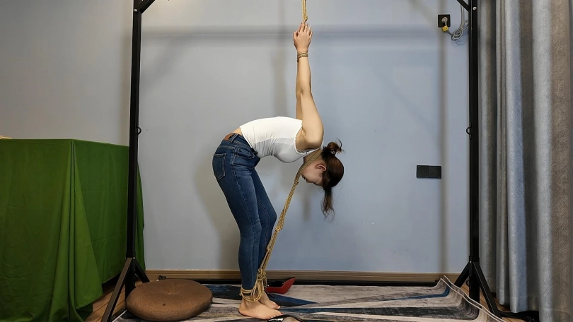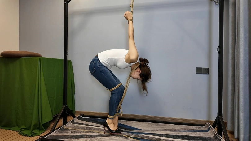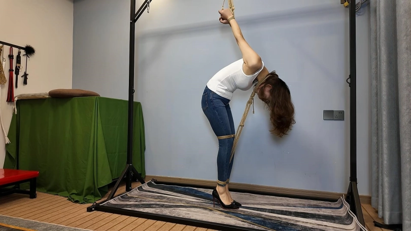 这么难受的姿势这次要一个小时,还要穿高跟鞋,这次可把晓琴累坏了,放下来的时候一下子就瘫软在地