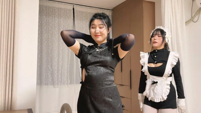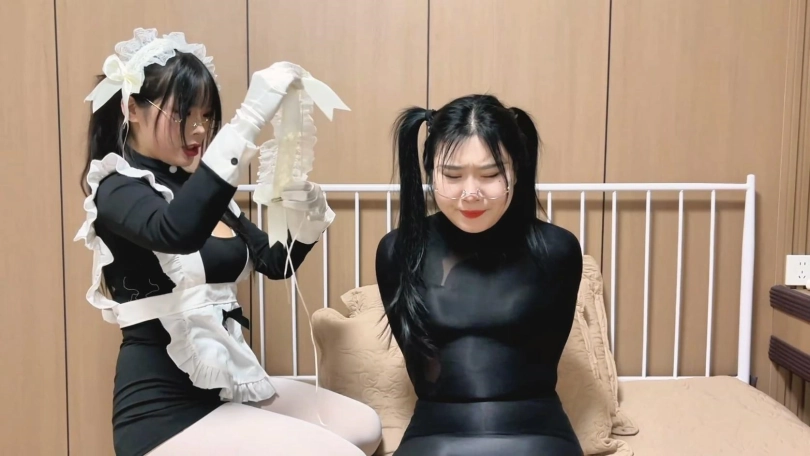 曼妮的身材实在太顶了,女仆装的胸部都塞不下了,性感女仆正在家无聊,黑丝旗袍女贼就潜入进来,女仆把女贼迷倒,将她用黑丝包裹成抱枕,然后慢慢的打扮成性感的丝袜可爱女仆抱枕,供自己肆意玩弄