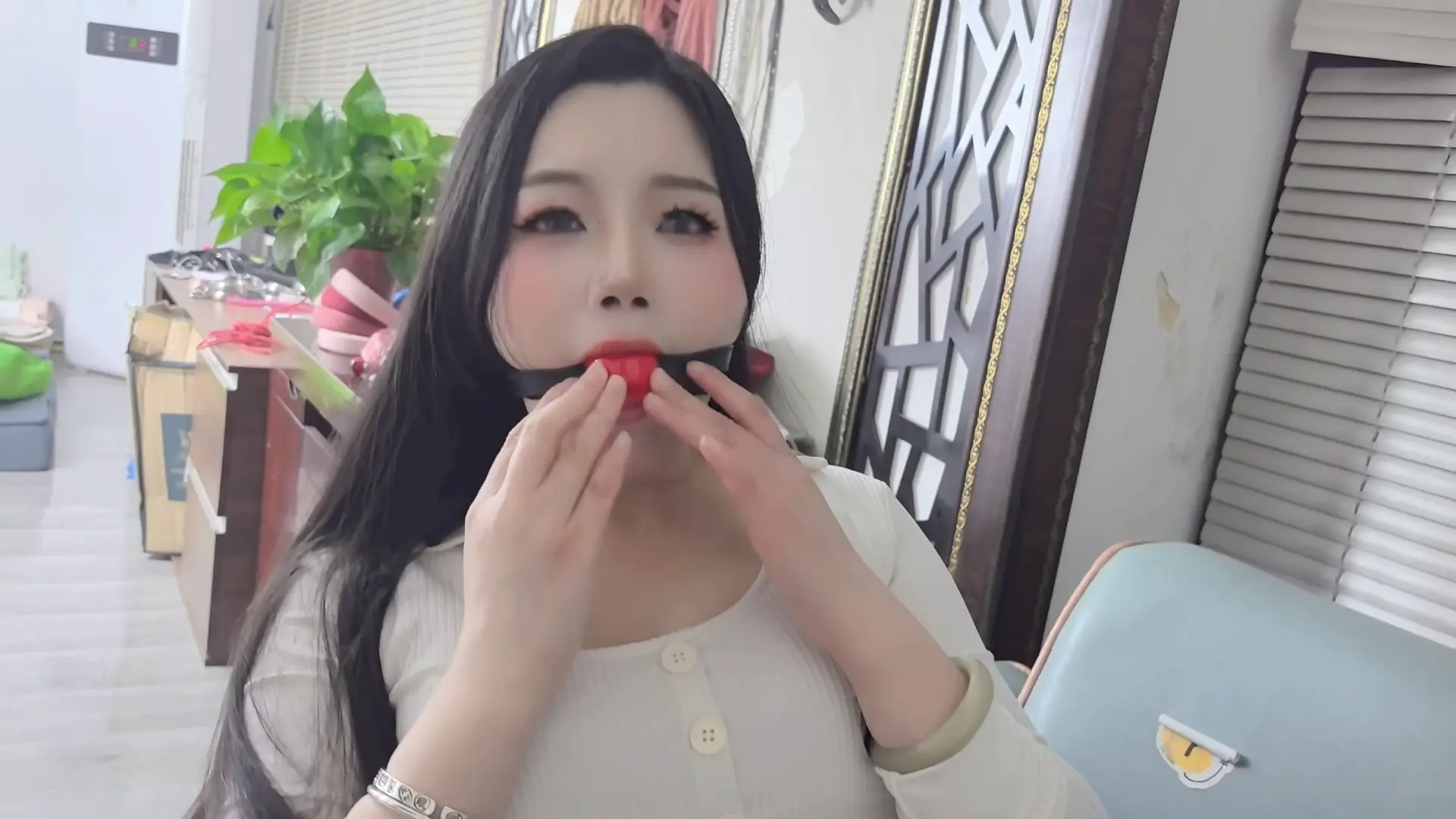 闲来无事的子墨想玩自缚,捆绑好双腿丝并袜勒嘴后,无意中发现一个奇怪的口球。在好奇心驱使下,子墨戴上口球,结果想不到的紧缚诅咒也接踵而至。挣扎无果求救无望的她,也只能接受诅咒带来的命运!