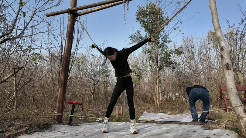 十一晨跑被歹徒抓住,进行一系列折磨挣扎,上集歹徒把十一绑到柱子上用棒棒震到失禁,抓起来带着湿身的裤子,大字捆绑,各种鞭打,TK,又把手脚绑到地上四根柱子上,成大字型,屁股朝上,用力打屁股,打完翻过来仍然是大字型,继续折磨....折磨之后扬长而去,留下十一在地上苦苦挣扎