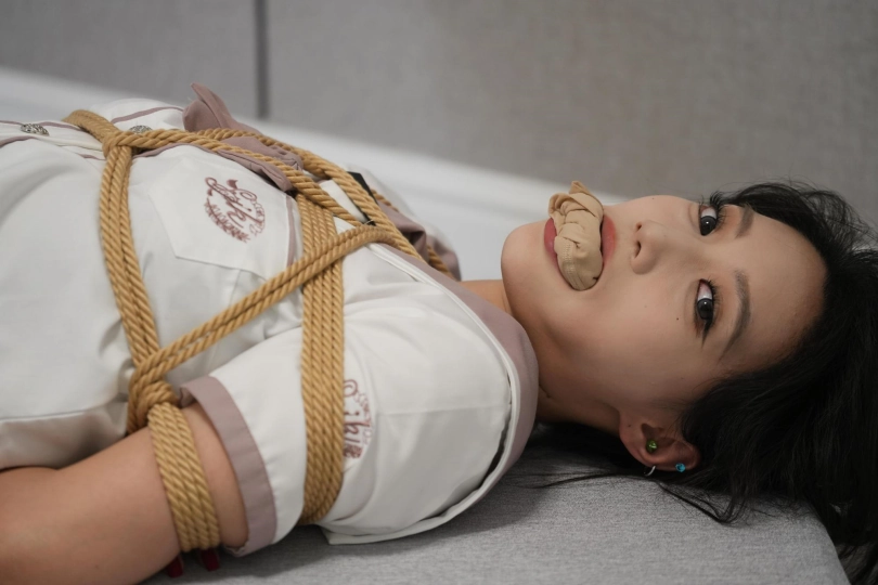 诺诺今天扮演的是粉衣女仆,先用观赏度较高的龟甲缚将她紧缚,再绑好日式胸缚和股绳,诺诺很害怕接下来会发生什么,她惶恐不安;用肉色丝袜堵住诺诺的嘴,这样她就算再挣扎,也发不出声音,为了防止她挣脱,再将她的腿牢牢绑住,诺诺四处张望,寻找逃出这个地方的出口,她不断叫喊,但无济于事,因为在这个密闭的空间里,堵住嘴根本没有人听见她的声音;接着诺诺换上JK,因为之前紧缚的绳子有松动,所以要换一种更紧的绑法对她进行束缚,绑完日式紧缚,接着绑胯缚,穿着裙子无法紧缚,只能脱掉裙子绑,诺诺疯狂挣扎叫喊,但因为被紧缚着无法挣脱,只能被脱掉裙子紧缚,全部紧缚完后,再将丝袜塞进她的嘴里,她还是没有停止挣扎,一直喊着“放开我”......最后,将她放置在软垫上,吊起她的双脚挠痒痒,诺诺痒地扭动身体,再对她进行放置,诺诺叫喊着,她期待着这场游戏赶紧结束......
