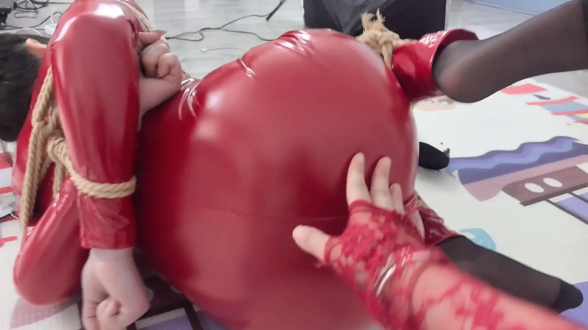 高冷御姐再陷K9地狱,捆绑、口球、抚摸、SP、丝袜践踏被迫摆出羞耻姿势,眼神更加绝望,口水眼泪麻绳红色皮衣!