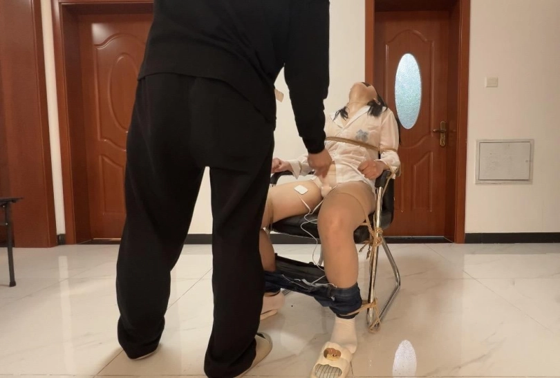 表妹暂住我家,出门回来给表妹递上事先准备好的迷水,表妹喝下后迷迷瞪瞪的晕了过去,小狼在表妹昏迷的时候把她捆在了椅子上,并贴上了役次元电击片,然后一盆水泼向表妹直接清醒了,然后进行了惨无人道的折磨。