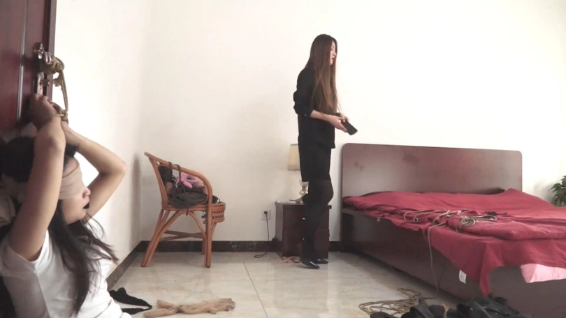 拘束衣全包和卧室捆绑情节,模特很敬业,挣扎得很到位,扮演S的模特身材够辣也够狠..