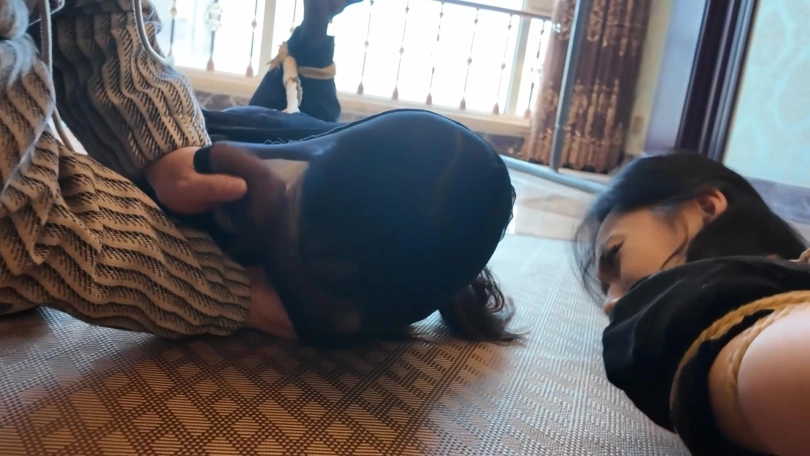 很久后,在一个密室里,保镖被绑在柱子上,富家女被绑在椅子上。她们二人的头依然被丝袜套着,捆绑囚禁。绑匪告诉她们不会有人来救她们,因为追踪器的信号早被屏蔽了。