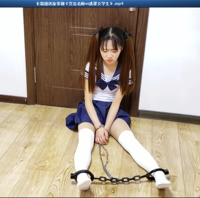过了一会老师来了 莹莹伸出双手求老师帮她打开手铐.老师以你总是翘课为由不帮莹莹打开手铐 要惩罚你一下 就戴着手铐 还把另外一幅手铐 锁到了脚上 强迫莹莹行走惩罚,妹子不断求饶